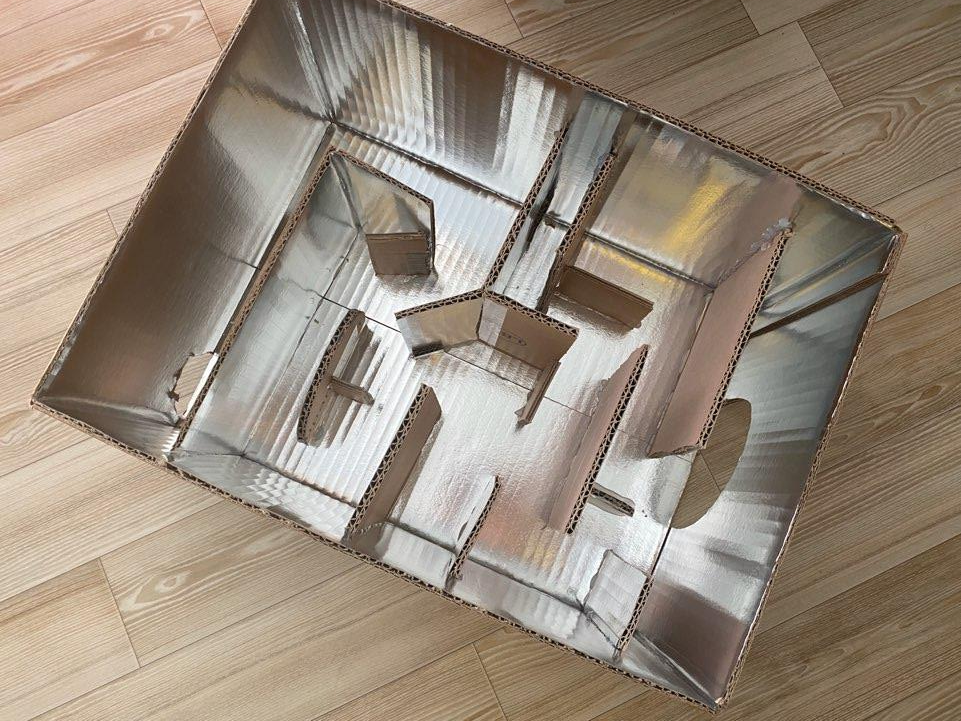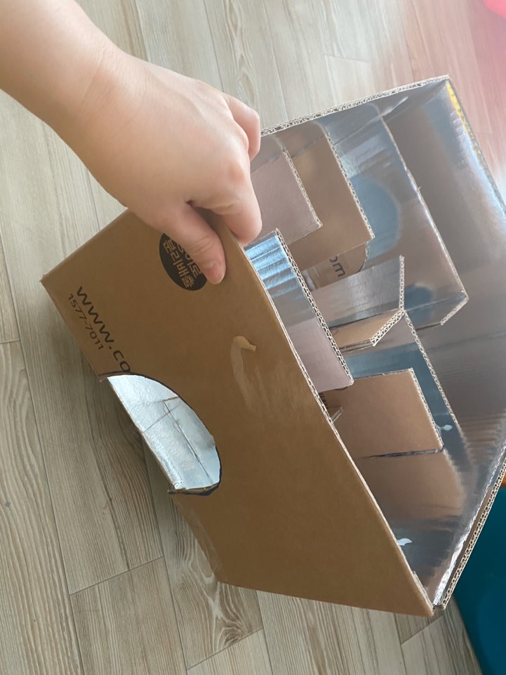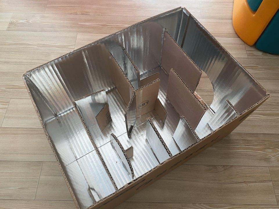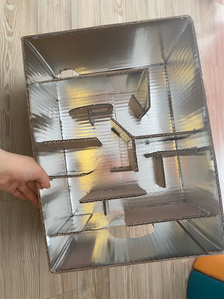 택배박스를 잘라서 글루건으로 붙여 구슬 미로찾기!!ㅎㅎㅎ