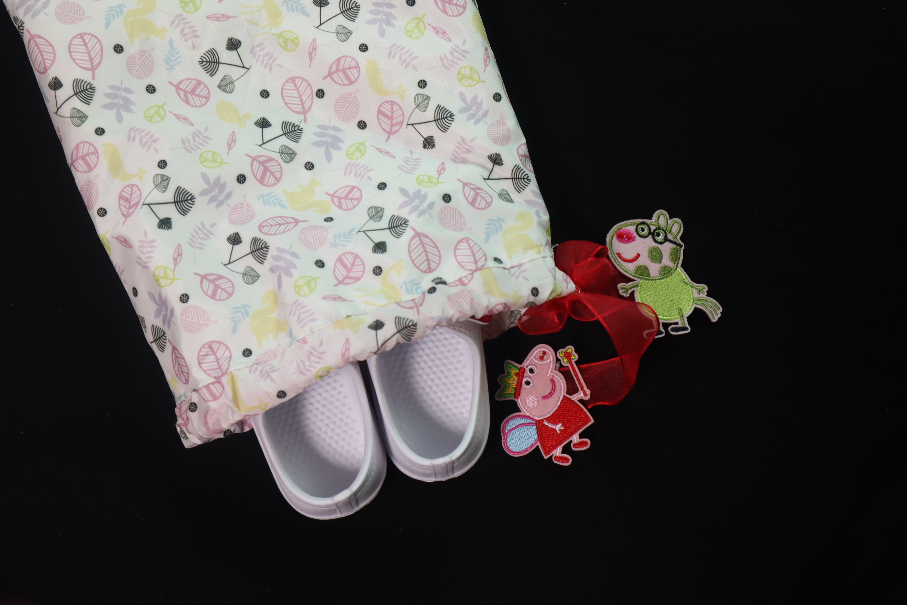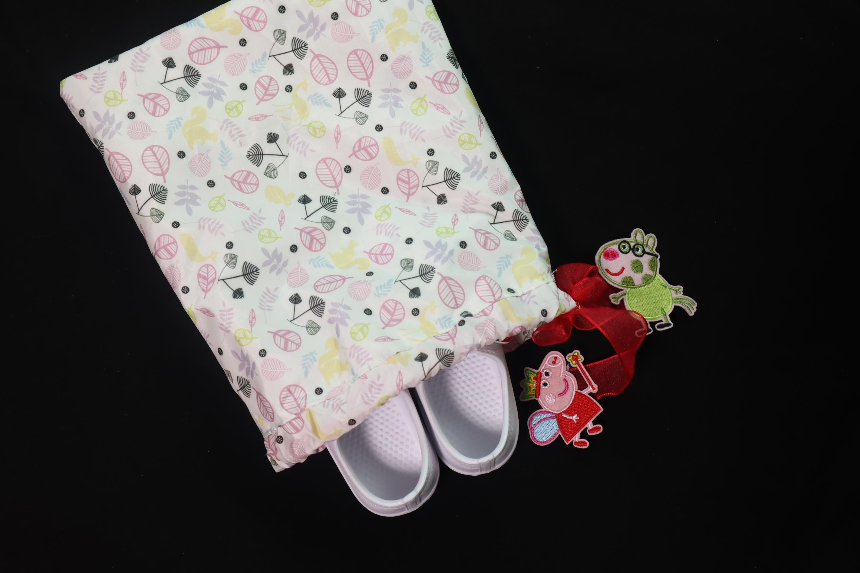 그래서 가방에 들어가는 사이즈로! 딸래미 발 사이즈에 딱 맞는 실내화주머니로 만들어줬어요!