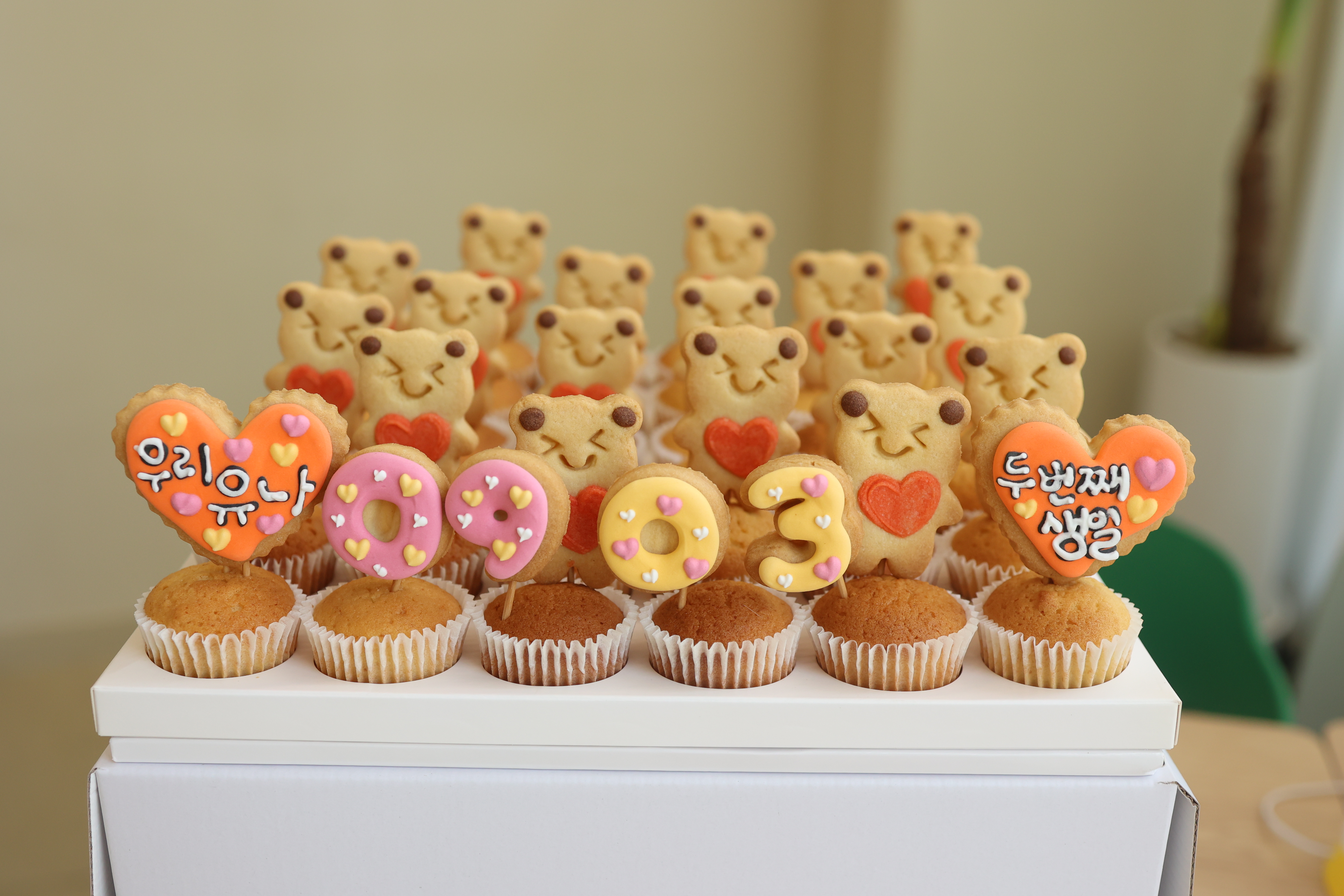 쿠키집 이미지에 맞게 디자인한 쿠키머핀케이크도 있는데요!